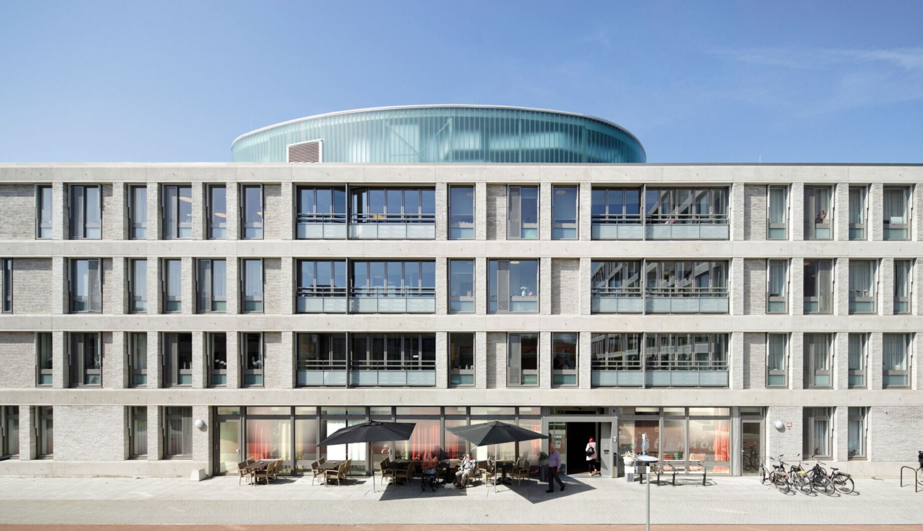 Het plan bestaat uit 4 bouwdelen en het baksteen is letterlijk de bindende factor tussen deze delen, waardoor het zich als een eenheid toont.