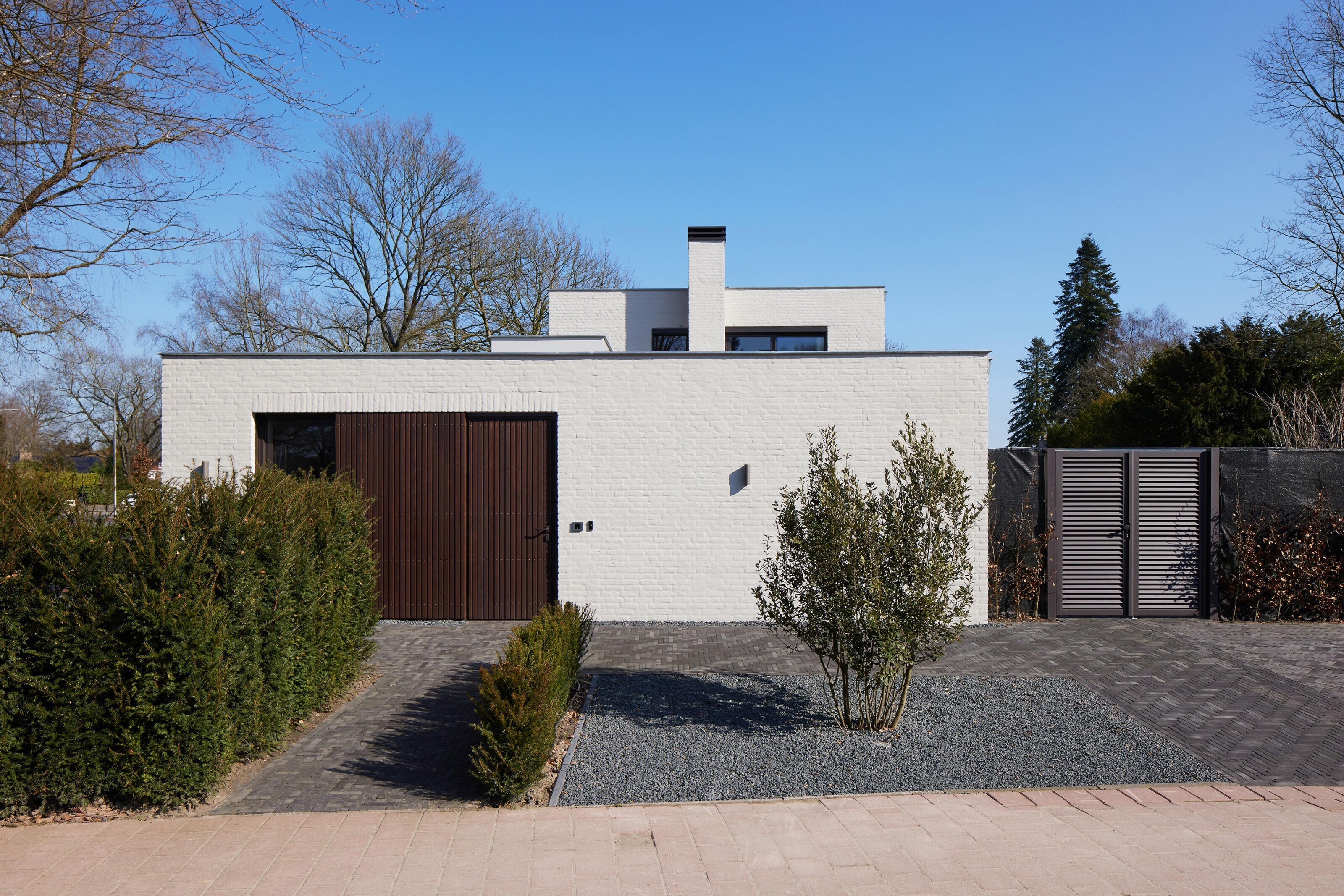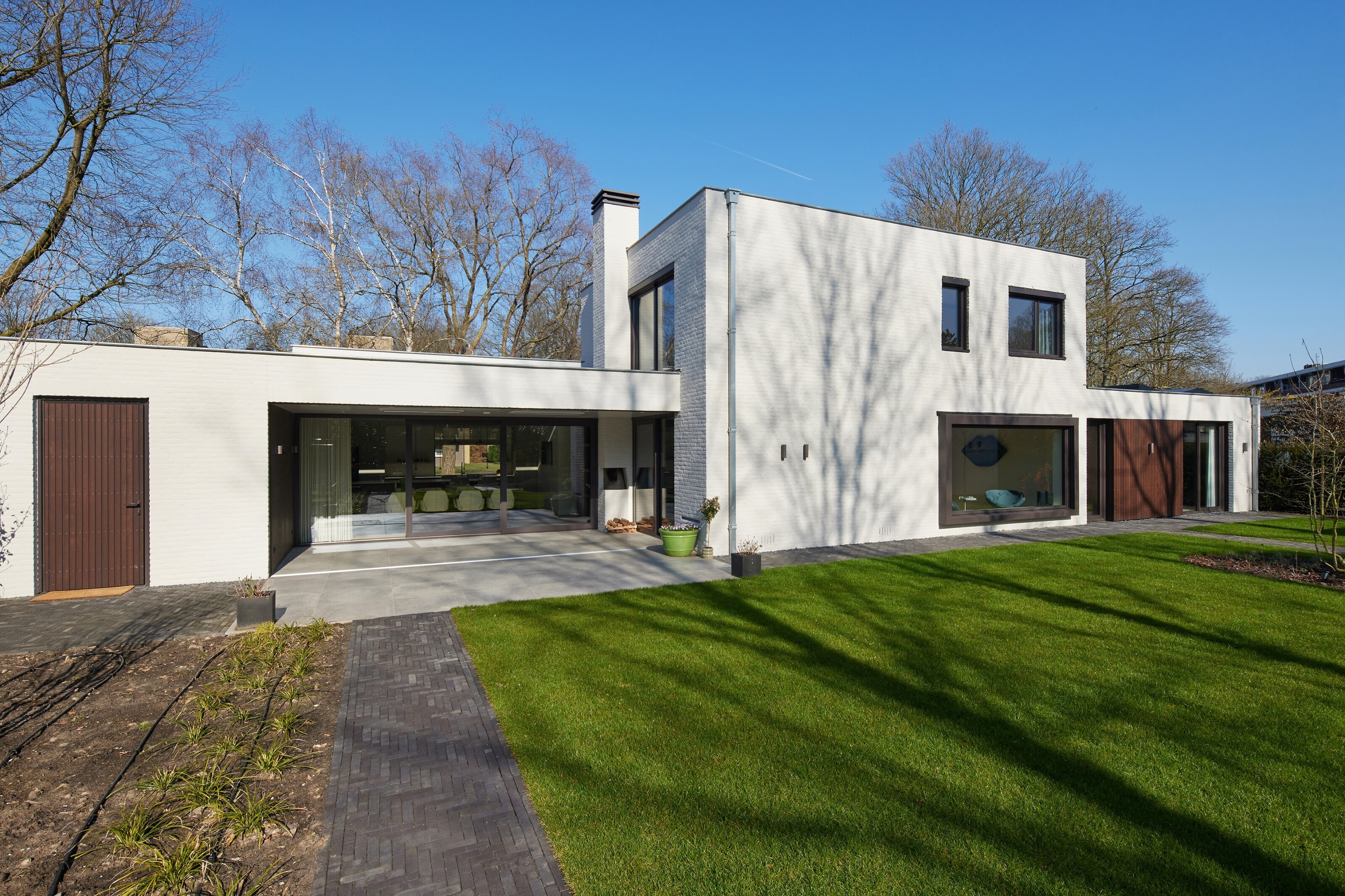 De bestaande woning is energetisch grondig aangepakt: zowel de vloer als het dak zijn na-geïsoleerd. Alle oorspronkelijke kozijnen zijn vervangen door duurzame aluminium profielen met hoogwaardige HR++ beglazing. Daarnaast is de villa voorzien van volledig nieuwe E- en W-installaties. Een moderne luchtwarmtepomp voedt de vloerverwarming, terwijl PV-panelen op het dak van de nieuwe aanbouw zorgen voor duurzame energieopwekking.