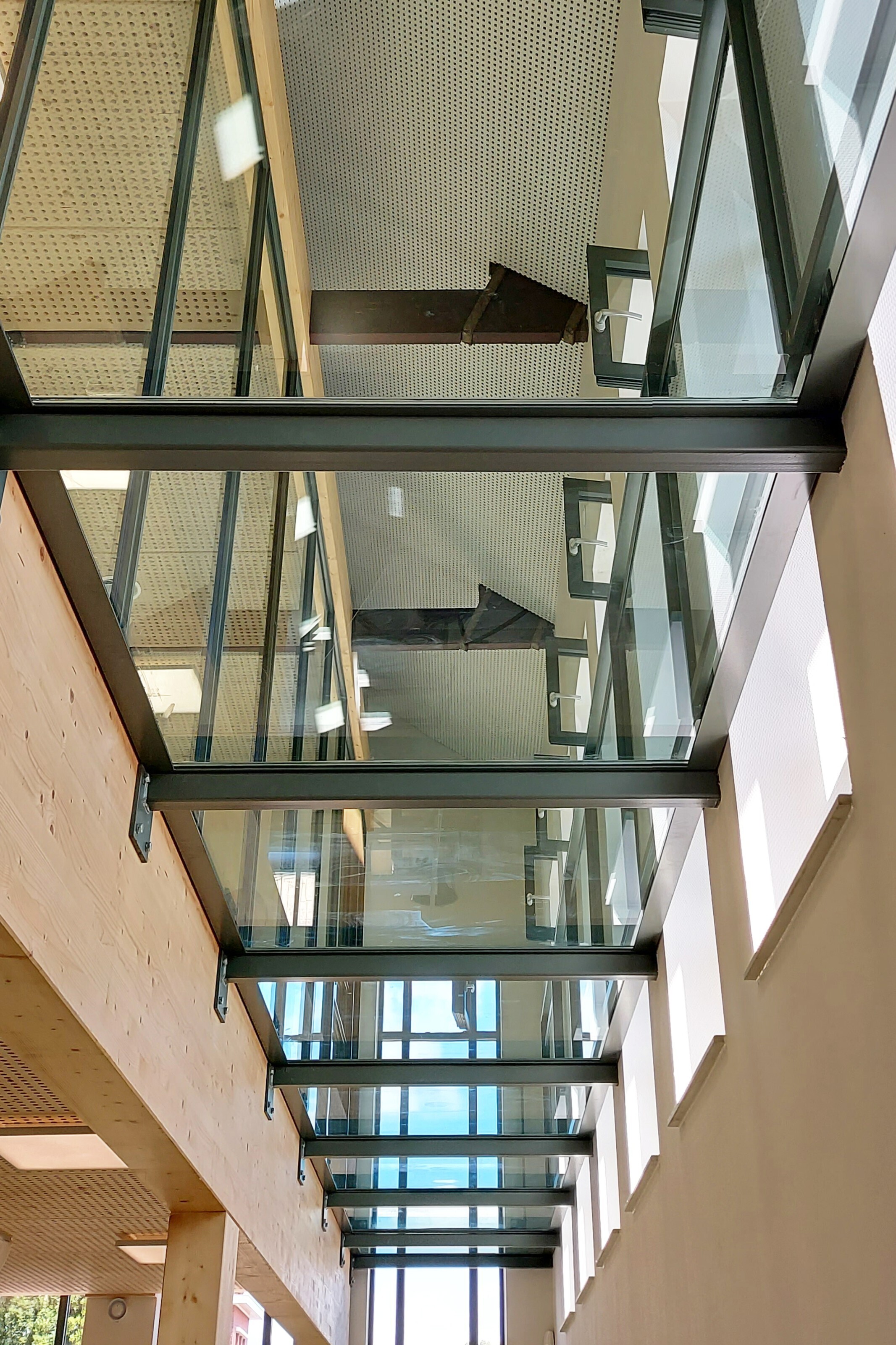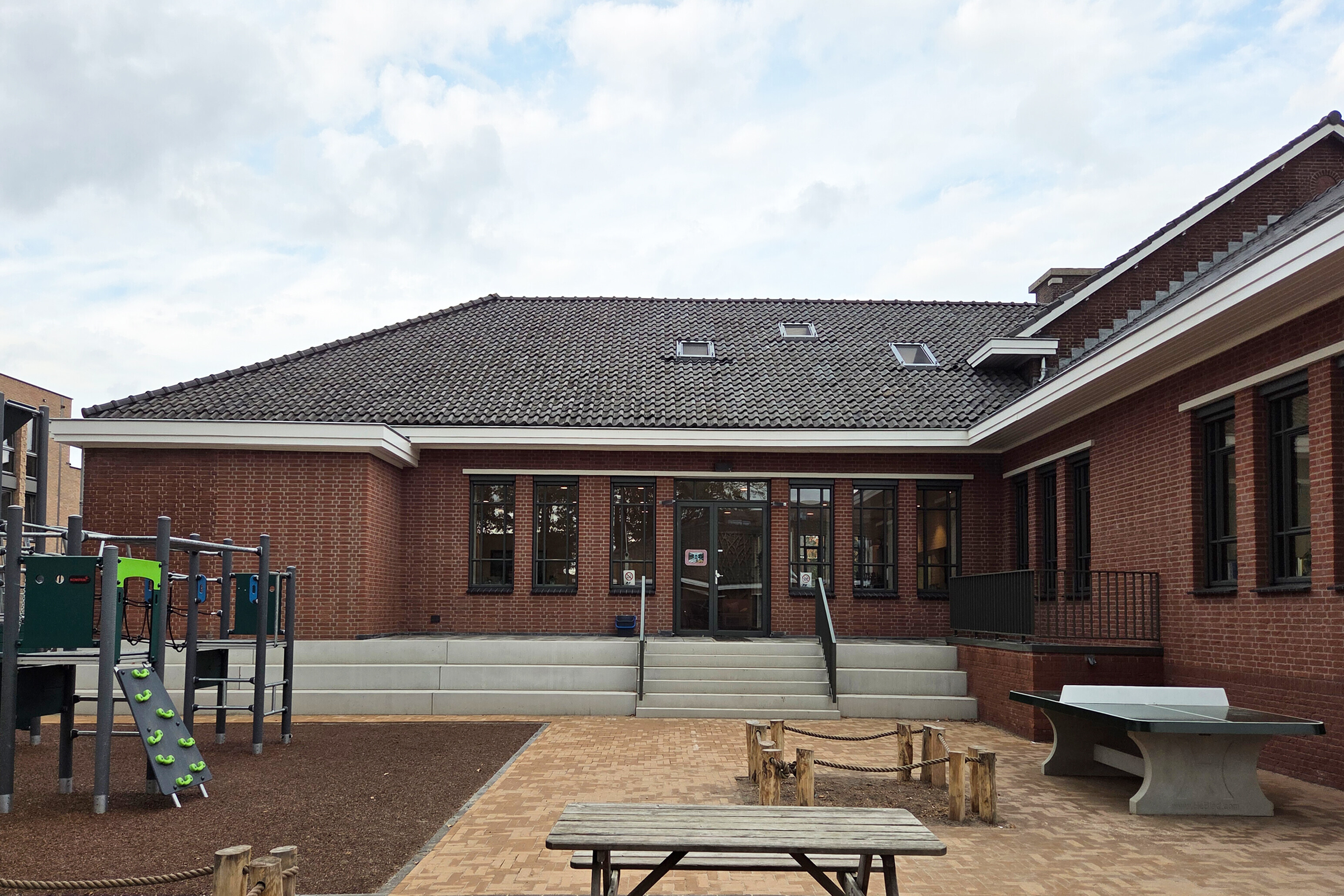 Op deze bouwlaag zijn tevens drie klaslokalen gerealiseerd, waarvan er twee ook weer beschikken over een eigen perron aan de speelplaats. Het derde lokaal bevindt zich in het hogere bouwdeel en maakt op subtiele wijze gebruik van bestaande elementen, zoals oorspronkelijke sparingen en niveauverschillen, waardoor daglicht diep het gebouw wordt binnengebracht. Daarboven is een vierde lokaal toegevoegd in een lichte houten constructie, los gedetailleerd van de gevels waarbij de bestaande spanten zorgvuldig in het zicht zijn gehouden en het licht weer ver in het gebouw kan komen.